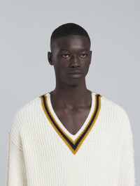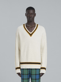 WHITE KNITTED V-NECK SWEATER