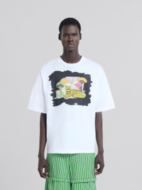Relaxed-fit T-shirt made from organic cotton jersey. Short sleeves and crew neck. Embellished with the collection's exclusive Wild Cat and Tall Rainbow Fungus graphic, designed by artist Alake Shilling and printed in water-based inks. Hand-stitched Marni mending logo with heart detail on the back. Made in Italy MODEL HUMU0223SPUSCW83WCW01 COMPOSITION 100% CO2