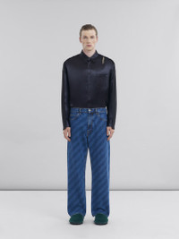 WIDE LEG BLUE JEANS WITH DIAGONAL STRIPE