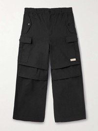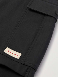 Marni's cargo trousers have a distinctly utilitarian feel to them. Made in Italy from cotton-blend gabardine, they have exaggerated flap pockets and layered panels along the wide legs. There are drawcords in the hem so you can adjust them to best highlight your footwear. Size & Fit - Fits true to size. Take your normal size - Wide leg, low-crotch style - Drawstring at the waist - Mid-weight, non-stretchy fabric - Model is shown wearing an IT 48 - Model measures: waist size 30, height 6'2"/ 188cm Details & Care - Black cotton-gabardine - Button and zip fastening - 65% cotton, 45% polyester
