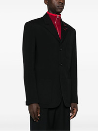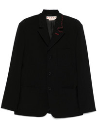 wool blazer Highlights - Black - Virgin wool - Front button fastening - Peak lapels - Contrast decorative stitching - Long sleeves - Faux buttoned cuffs - Chest patch pocket - Two front patch pockets - Central rear vent - Internal jetted pocket - Full lining - Straight hem Made in Italy Composition Outer: Virgin Wool 100% Lining: Viscose 52%, Cupro 48% SIZE & FIT Model measurements Height 6 ft 2 in(1.87 m) Bust/Chest 36.41 in(92.5 cm) Hips 37 in(94 cm) Waist 29.52 in(75 cm) FittingInformation Designed for a regular fit, allowing for a comfortably loose fit throughout the body The internal shoulder pads offer a structured shape Made from a midweight non-stretch fabric Washing instructions Dry Clean Only