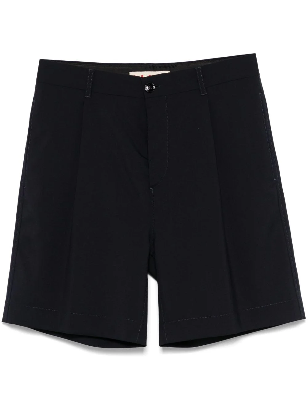 wool shorts Highlights - Navy blue - Button fly fastening - Two side slit pockets - Two rear jetted pockets Imported Composition Lining: Cotton 100% Outer: Virgin Wool 100% SIZE & FIT Model measurements Height 6 ft 2 in(1.87 m) Bust/Chest 38.97 in(99 cm) Hips 37.99 in(96.5 cm) Waist 29.52 in(75 cm) FittingInformation Designed for relaxed fit, offering a comfortable loose fit over the leg Made from a midweight non-stretch fabric