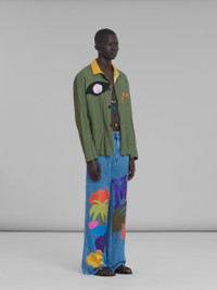 MARNI X NO VACANCY INN - GREEN GABARDINE JACKET WITH EMBROIDERED PATCHES
