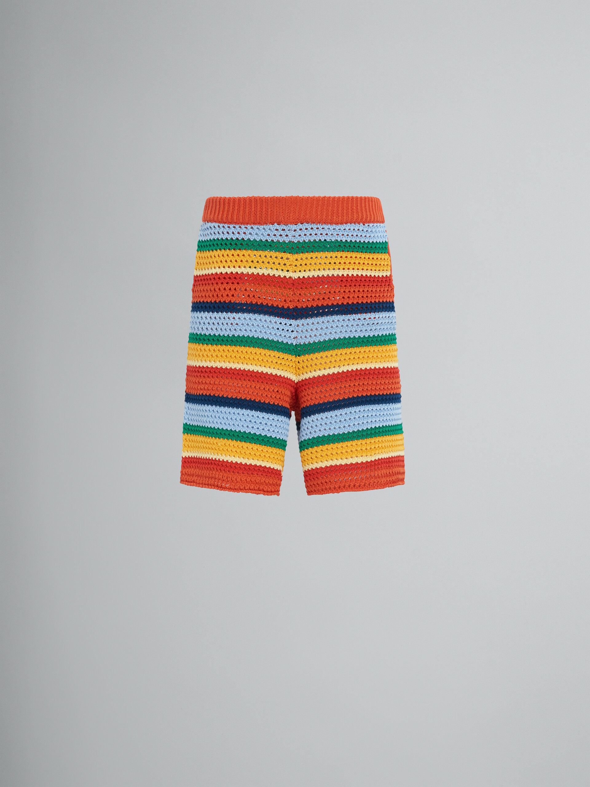 Marni x No Vacancy Inn knee-length shorts in a striped cotton knit. Relaxed fit. Ribbed waistband and side pockets. Made in Italy. DETAILS FIT The model is 187 cm tall. The model is wearing size 48 IT. COMPOSITION Primary Fabric: 100% Cotton Knit