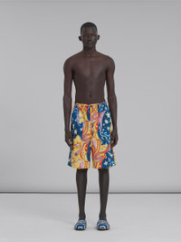 MARNI X NO VACANCY INN - POPLIN SHORTS WITH GALACTIC PARADISE PRINT.