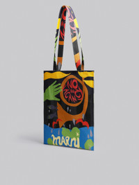 Marni x No Vacancy Inn North/South flat tote bag in coated canvas. Long handles. Multicolour print with Marni No Vacancy Inn lettering. Made in Italy. DETAILS COMPOSITION Body: 100% Cotton - Lining: 100% Cotton
