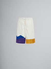 MARNI X NO VACANCY INN - WHITE GABARDINE SHORTS WITH EMBROIDERY