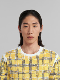 YELLOW BIO COTTON T-SHIRT WITH IRREGULAR CHECKED PRINT
