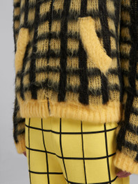 YELLOW CHECKED MOHAIR HOODED CARDIGAN