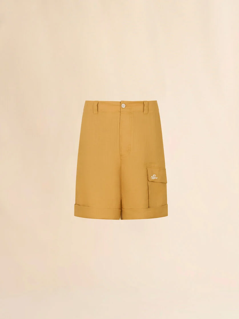 YELLOW RAMIE CARGO SHORTS WITH MARNI WAVE LOGO