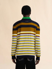 YELLOW WOOL SWEATER WITH MIXED STRIPES