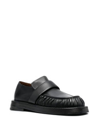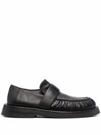 Alluce leather loafers Black leather Alluce leather loafers from MARSÈLL featuring ruched detailing, almond toe, slip-on style, branded insole and flat rubber sole. Made in Italy Composition Outer: Calf Leather 100% Lining: Calf Leather 100% Sole: Rubber 100% SIZE & FIT Measurement HEEL 1.4 in(3.5 cm) Sole height 1 in(2.5 cm)