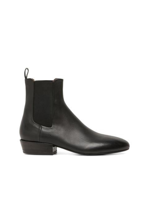 Granblocco Chelsea boots taupe grey leather polished finish pull-tab at the heel almond toe elasticated side panels stacked heel leather sole Made in Italy Composition Outer: Leather 100% Sole: Leather 100% Lining: Leather 100%