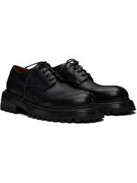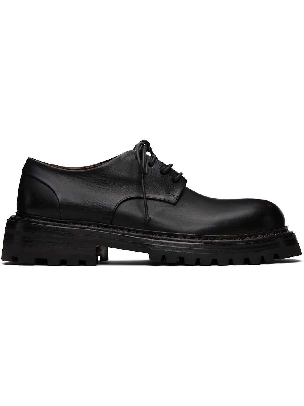 Grained leather derbys. · Lace-up closure · Buffed leather lining · Topstitching at welt · Stacked leather and rubber heel and midsole · Treaded rubber sole Supplier color: Black Upper: leather. Sole: rubber. Made in Italy 252349M225008