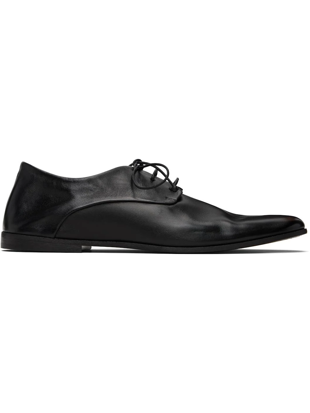 Crinkled polished calfskin derbys. · Pointed toe · Lace-up closure · Leather lining · Calfskin sole with rubber heel Supplier color: Black Upper: calfskin. Sole: calfskin, rubber. Made in Italy 261349M225010