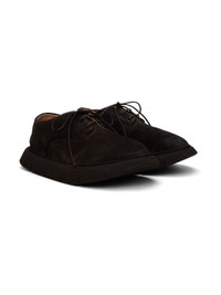 Suede derbys in brown. · Lace-up closure · Padded tongue and collar · Suede and grained leather lining · Treaded micro-rubber sole Supplier color: T. moro