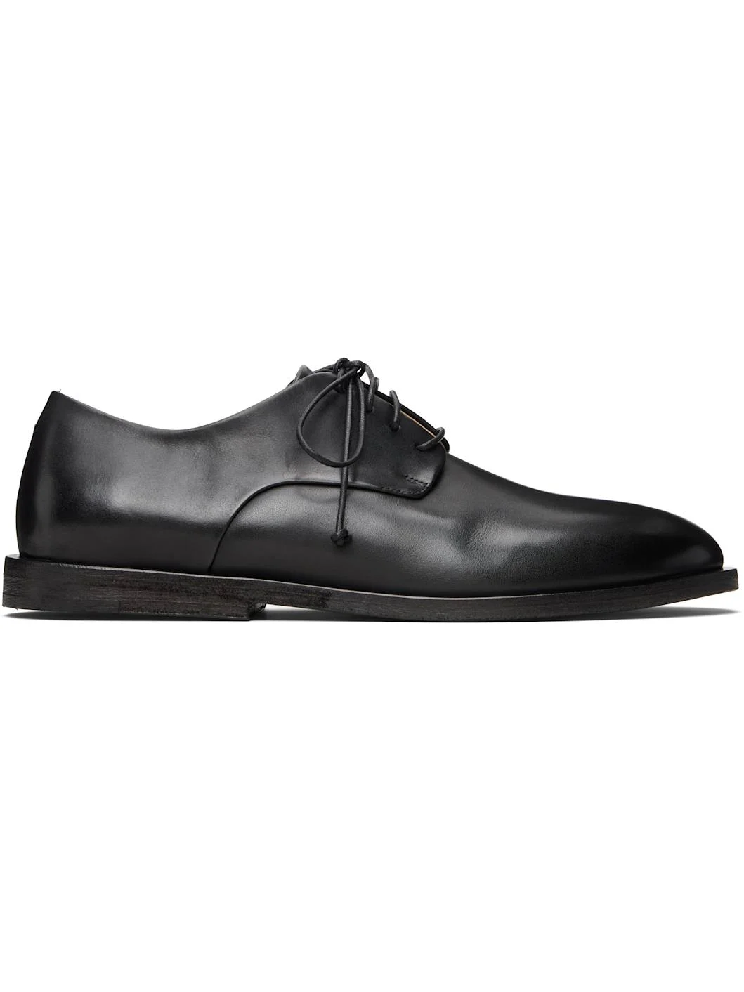 Buffed leather derbys. · Lace-up closure · Leather lining · Stacked calfskin midsole · Calfskin sole Supplier color: Black Calfskin. Made in Italy 261349M225005