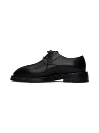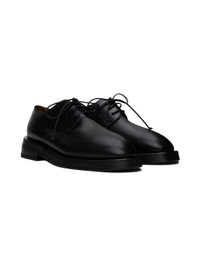 Buffed calfskin derbys in black. · Lace-up closure · Logo embossed at padded leather footbed · Buffed leather and suede lining · Hand-colored stacked leather heel and platform midsole · Leather sole with rubber injection · Platform: H1.25" · Heel: H1.75" Supplier color: Black Upper: calfskin. Sole: leather, rubber. Made in Italy 242349M225026