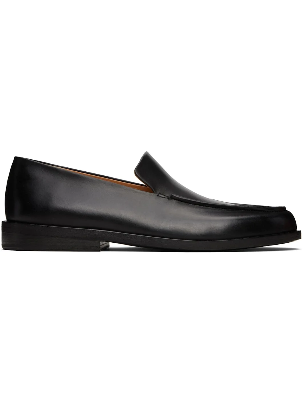 Buffed leather loafers in black. · Moc toe · Stacked leather heel with rubber injection · Leather sole Supplier color: Black Upper: leather. Sole: leather, rubber. Made in Italy 252349M231015