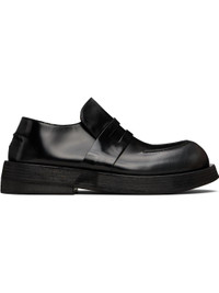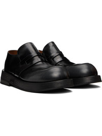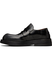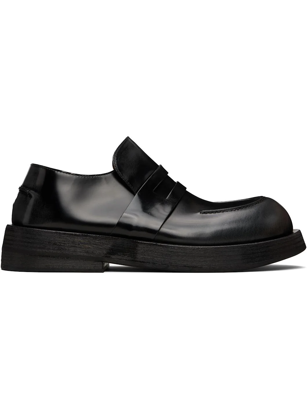 Polished leather loafers in black. · Moc toe · Strap with cutout at vamp · Pinched seam at heel counter · Buffed leather lining · Stacked leather heel and midsole · Rubber sole Supplier color: Black-lead Upper: leather. Sole: leather, rubber. Made in Italy 252349M231007