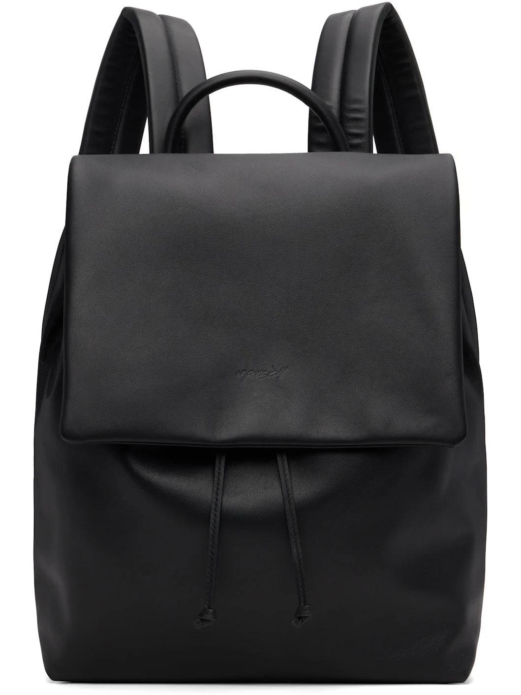 Buffed leather backpack. · Rolled carry handle · Padded adjustable shoulder straps · Logo-embossed magnetic flap · Drawstring at throat · Zip pocket at interior · H14.5" W12.5" x D6" Supplier color: Black 100% leather. Made in Italy 252349M166000