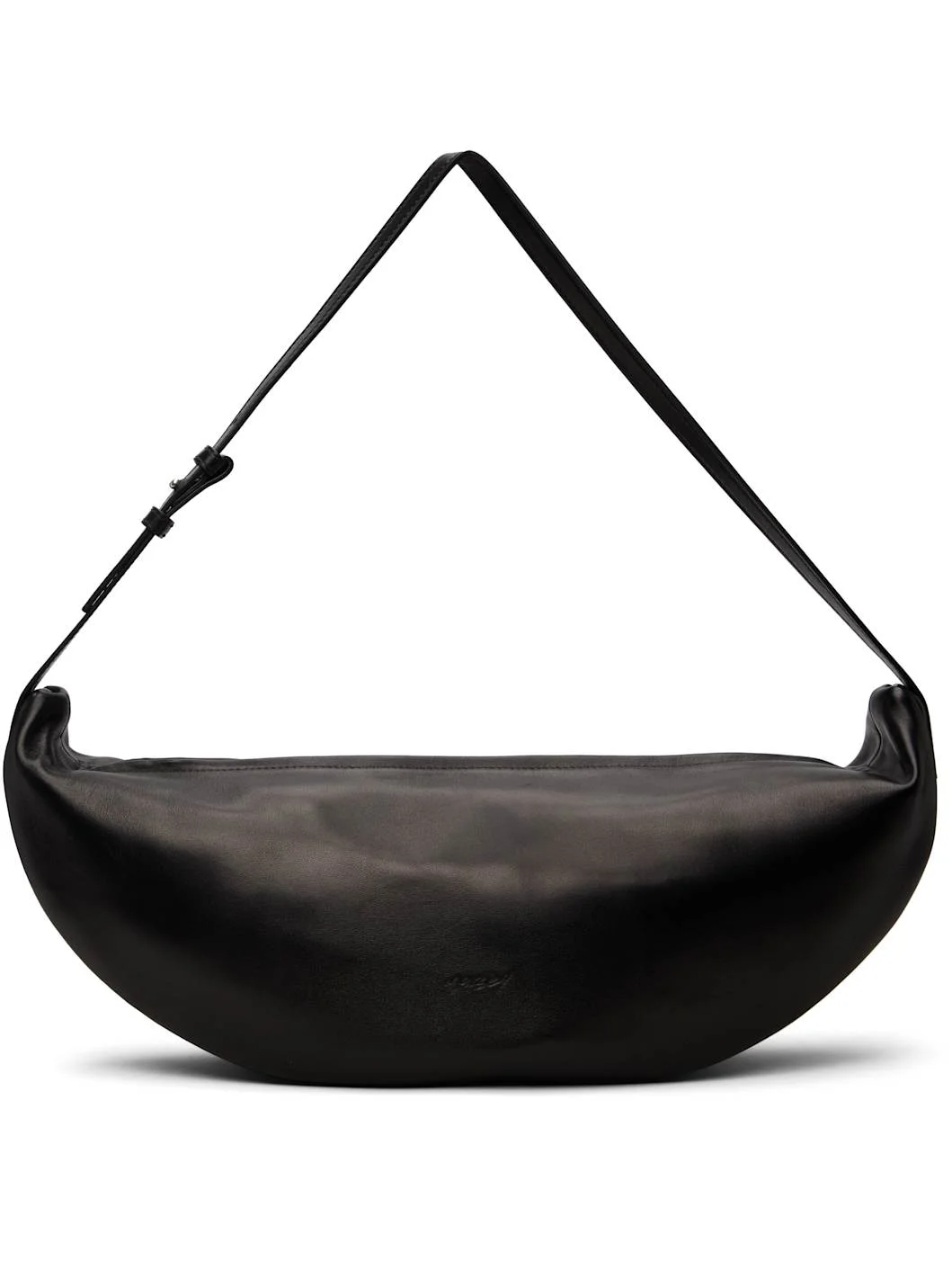 Buffed sheepskin pouch. · Adjustable shoulder strap · Logo embossed at face · Zip closure · Zip pocket at interior · Grained leather lining · Logo-engraved silver-tone hardware · H7.5" x W19.5" x D3.5" Supplier color: Black Sheepskin. Made in Italy 261349M171000