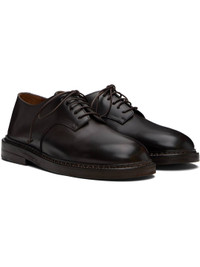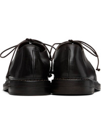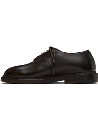 Buffed leather derbys. · Lace-up closure · Topstitching at welt · Stacked leather heel with rubber injection · Leather sole Supplier color: Dark brown Upper: leather. Sole: leather, rubber. Made in Italy 252349M225026