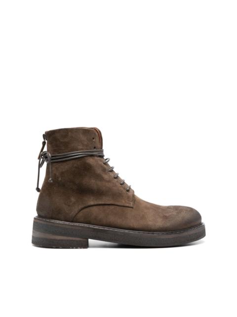 suede lace-up ankle boots Highlights - Dark brown - Contrasting lacing - Zip fastening at the back - Stacked heel - Rounded toe Made in Italy Composition Sole: Rubber 100% Lining: Calf Leather 100% Outer: Calf Suede 100%