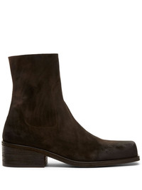 55mm Cassello suede ankle boots coffee brown calf suede ankle-length side zip fastening square toe low stacked heel leather outsole Made in Italy Composition Lining: Calf Leather 100% Outer: Suede 100% Sole: Leather 100% SIZE & FIT Measurement HEEL 2.16 in(5.5 cm) CIRCUMFERENCE 9.44 in(24 cm) Sole height 0.39 in(1 cm) HEIGHT 7.08 in(18 cm)