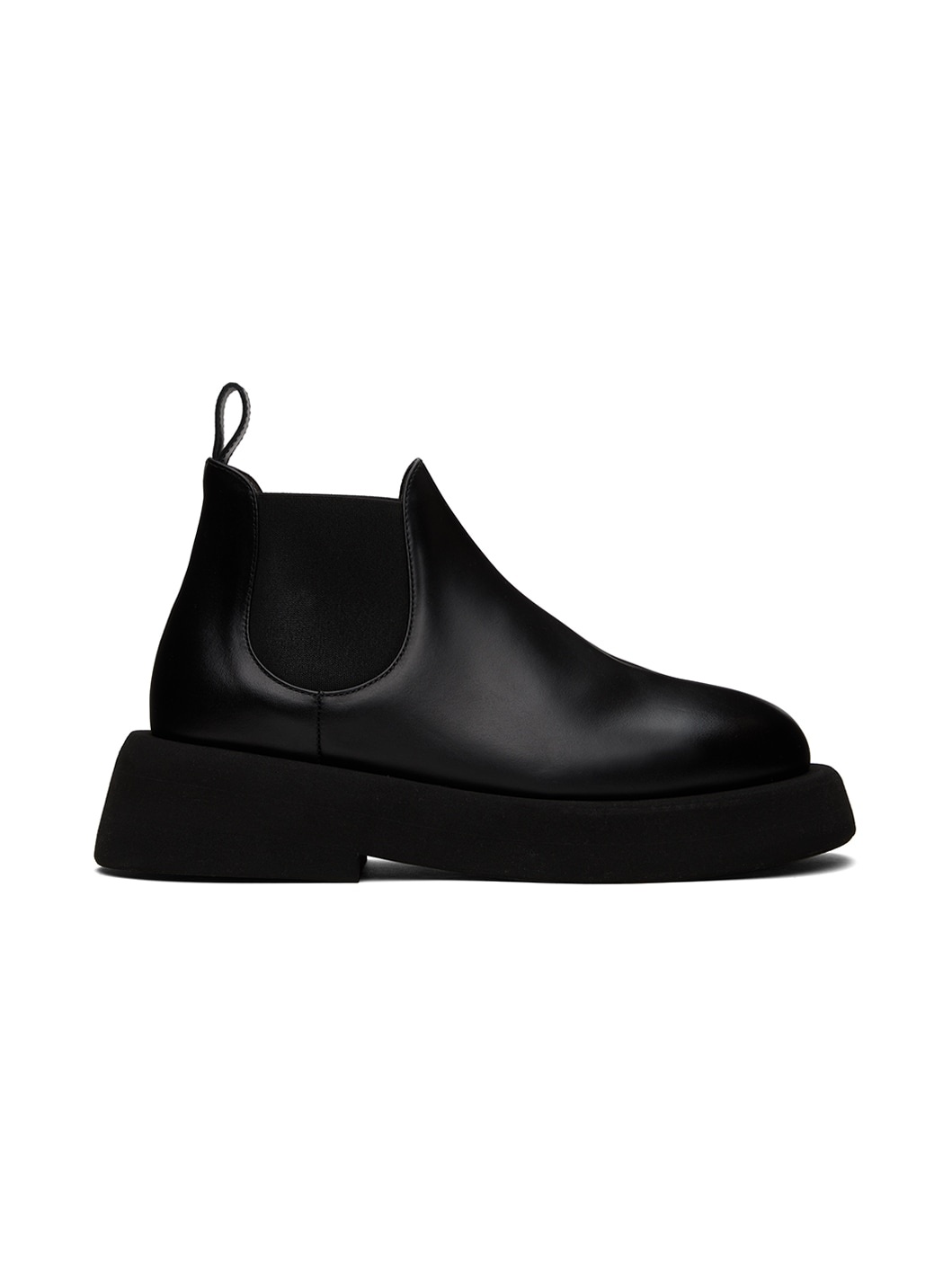 Buffed calfskin Chelsea boots in black. · Elasticized gusset at sides · Leather pull-loop at heel · Buffed calfskin lining · Foam rubber platform sole · Platform: H1.5 in · Heel: H2 in Part of the Marsèll Gomme® collection. Supplier color: Black