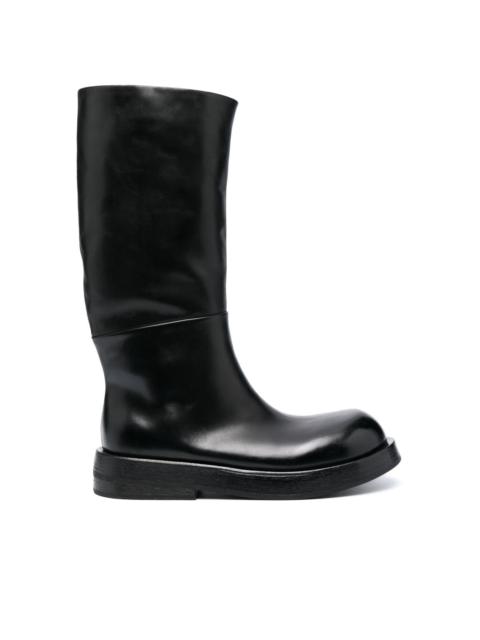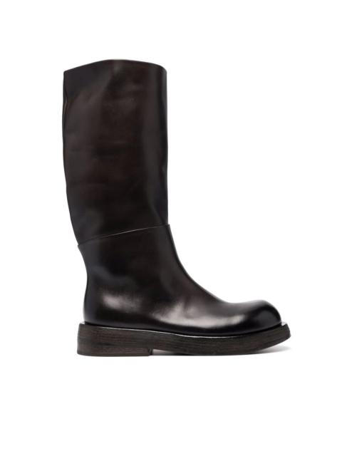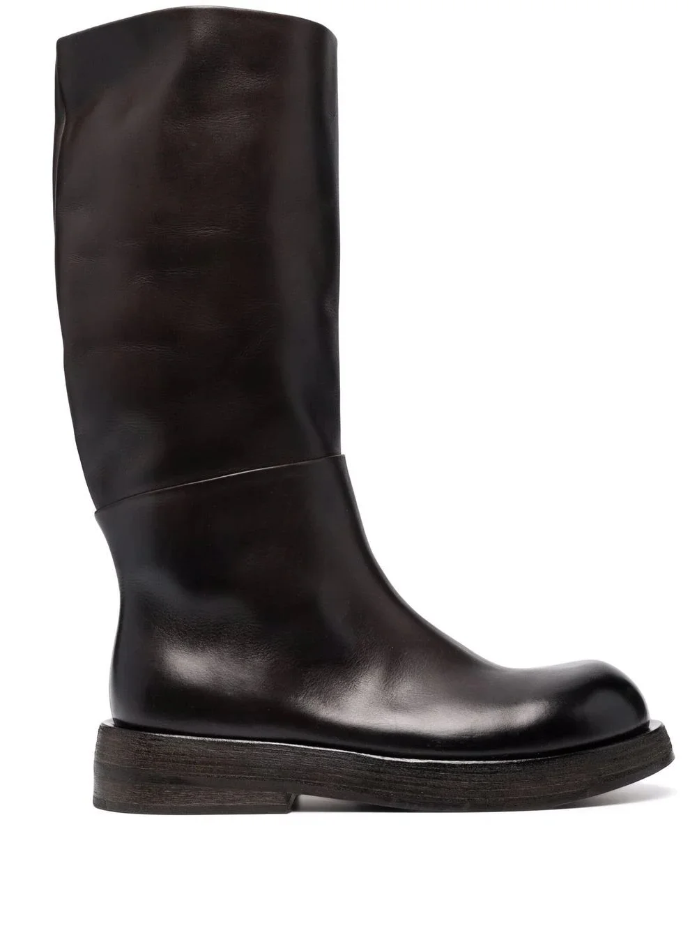 Musona knee-high boots brown leather slip-on style knee-length round toe branded insole flat sole Made in Italy Composition Sole: Rubber 100% Outer: Leather 100% Lining: Leather 100% SIZE & FIT Measurement CIRCUMFERENCE 13.38 in(34 cm) HEEL 1.77 in(4.5 cm) HEIGHT 14.76 in(37.5 cm) Sole height 1.18 in(3 cm)