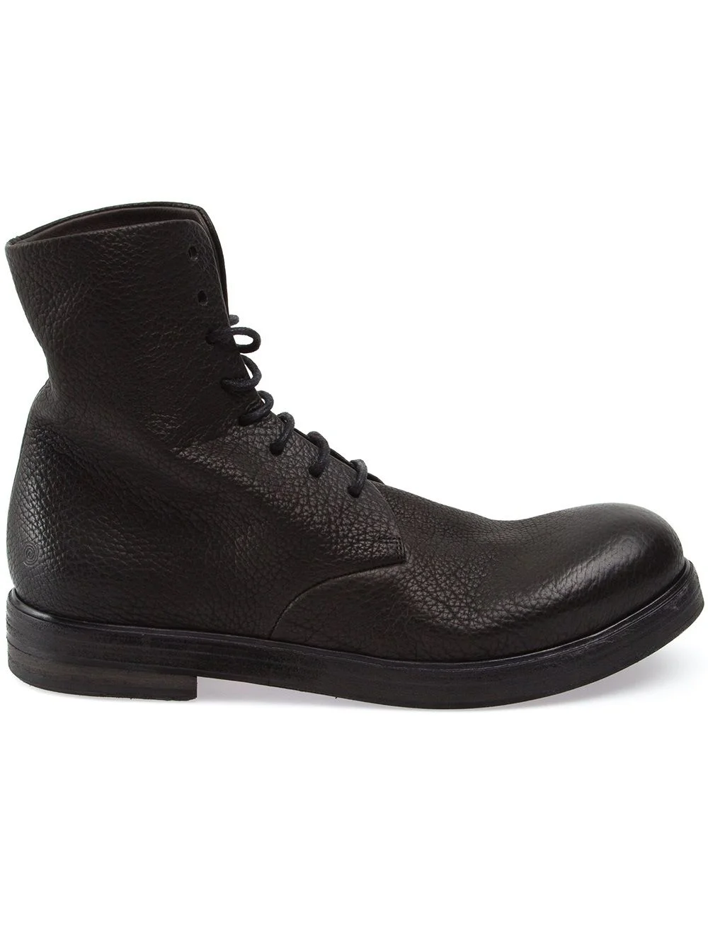 lace-up boots Black leather lace-up boots from Marsell featuring a round toe, a thick sole and a short stacked chunky heel. This item fits large, please select the next size down. Made in Italy Composition Sole: Rubber 50%, Calf Leather 50% Calf Leather 100% Lining: Calf Leather 100% Outer: Calf Leather 100% SIZE & FIT Measurement HEIGHT 6.1 in(15.5 cm) HEEL 1.18 in(3 cm)