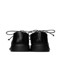 Buffed leather derbys in black. · Square toe · Lace-up closure · Stacked leather midsole and heel · Treaded rubber outsole · Heel: H1.5 in Supplier color: Black Upper: leather. Sole: rubber.