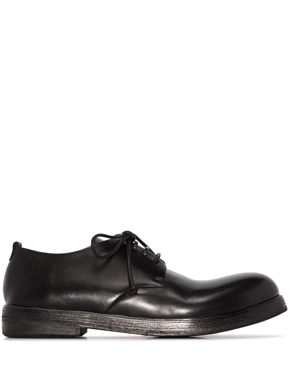 Zucca Zeppa derby shoes Showcasing the smooth, meticulous lines that have become synonymous with the brand, these Marsell Derby shoes exhibit the refined craftsmanship for which the fashion house is known. Crafted from butter-soft leather, the ebony-black pair sit atop a stacked rubber sole. Made in Italy Composition Outer: Leather 100% Lining: Leather 100% Sole: Leather 100%, Rubber 100% SIZE & FIT Model measurements Height 6 ft 2 in(1.87 m) Bust/Chest 36.41 in(92.5 cm) Hips 37 in(94 cm) Waist 29.52 in(75 cm) FittingInformation This piece fits true to size. We recommend you get your regular size Measurement HEEL 1.37 in(3.5 cm) Sole height 0.98 in(2.5 cm)