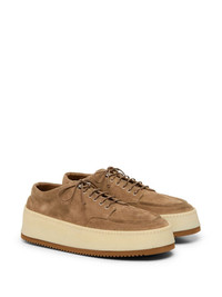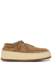 Parapana platform Derby shoes camel brown suede apron toe round toe front lace-up fastening platform sole ridged rubber sole Made in Italy Composition Sole: Rubber 100% Outer: Suede 100% Lining: Leather 100% SIZE & FIT Measurement HEEL 1.96 in(5 cm) Sole height 1.57 in(4 cm)