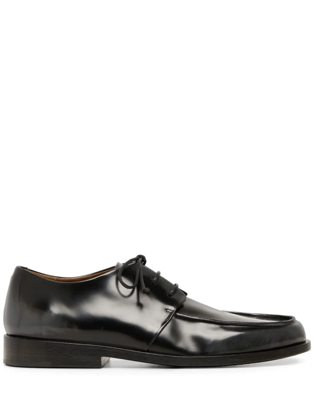 Mocasso leather Derby shoes black calf leather polished finish front lace-up fastening apron toe low stacked heel Made in Italy Composition Sole: Calf Leather 100% Lining: Calf Leather 100% Outer: Calf Leather 100%