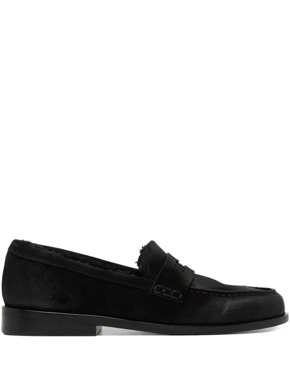 suede loafers Highlights - Black - Penny slot - Leather sole Made in Italy Composition Outer: Leather 100% Lining: Lamb Shearling 100% Sole: Leather 100%