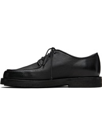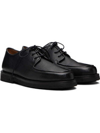 Grained leather derbys. · Moc toe · Lace-up closure · Buffed leather lining · Topstitching at welt · Stacked foam rubber heel and midsole · Treaded rubber sole Supplier color: Black Upper: leather. Sole: rubber. Made in Italy 252349M225014