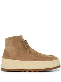Parapana suede boots light brown leather suede apron toe front lace-up fastening platform sole Made in Italy Composition Outer: CALFSKIN 100% Lining: Leather 100% Sole: Rubber 100% SIZE & FIT Measurement Sole height 0.98 in(2.5 cm) HEIGHT 3.93 in(10 cm) HEEL 1.37 in(3.5 cm)