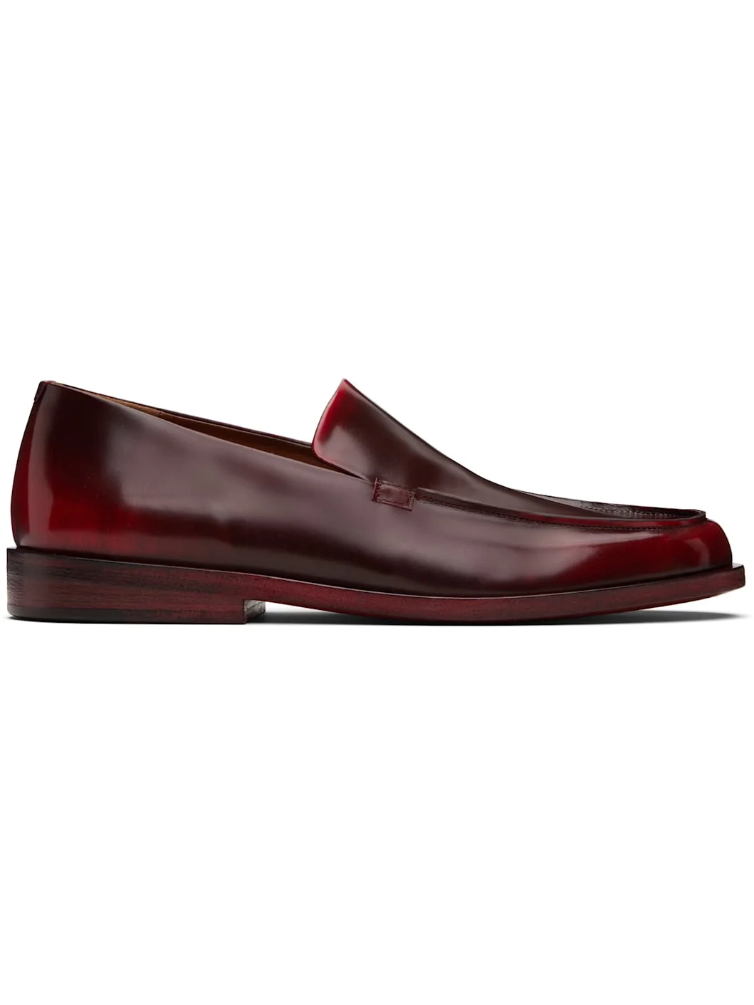 Polished leather loafers. · Discoloration throughout · Moc toe · Nubuck lining · Stacked leather midsole and heel · Leather sole Supplier color: Red Leather. Made in Italy 252349M231016