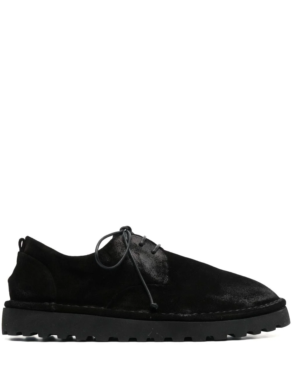 Sancrispa Alta suede derby shoes black calf suede front lace-up fastening round toe branded insole flat rubber sole Made in Italy Composition Outer: Calf Suede 100% Lining: Calf Leather 100% Sole: Rubber 100% SIZE & FIT Measurement HEEL 1.77 in(4.5 cm) Sole height 1.18 in(3 cm)
