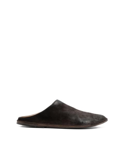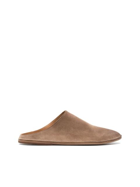 Strasacco mules dark brown calf leather calf suede branded insole round toe slip-on style flat rubber sole Made in Italy Composition Lining: Calf Leather 100% Sole: Calf Leather 100%, Rubber 100% Outer: Calf Suede 100% SIZE & FIT Measurement HEEL 0.39 in(1 cm) Sole height 0.39 in(1 cm)