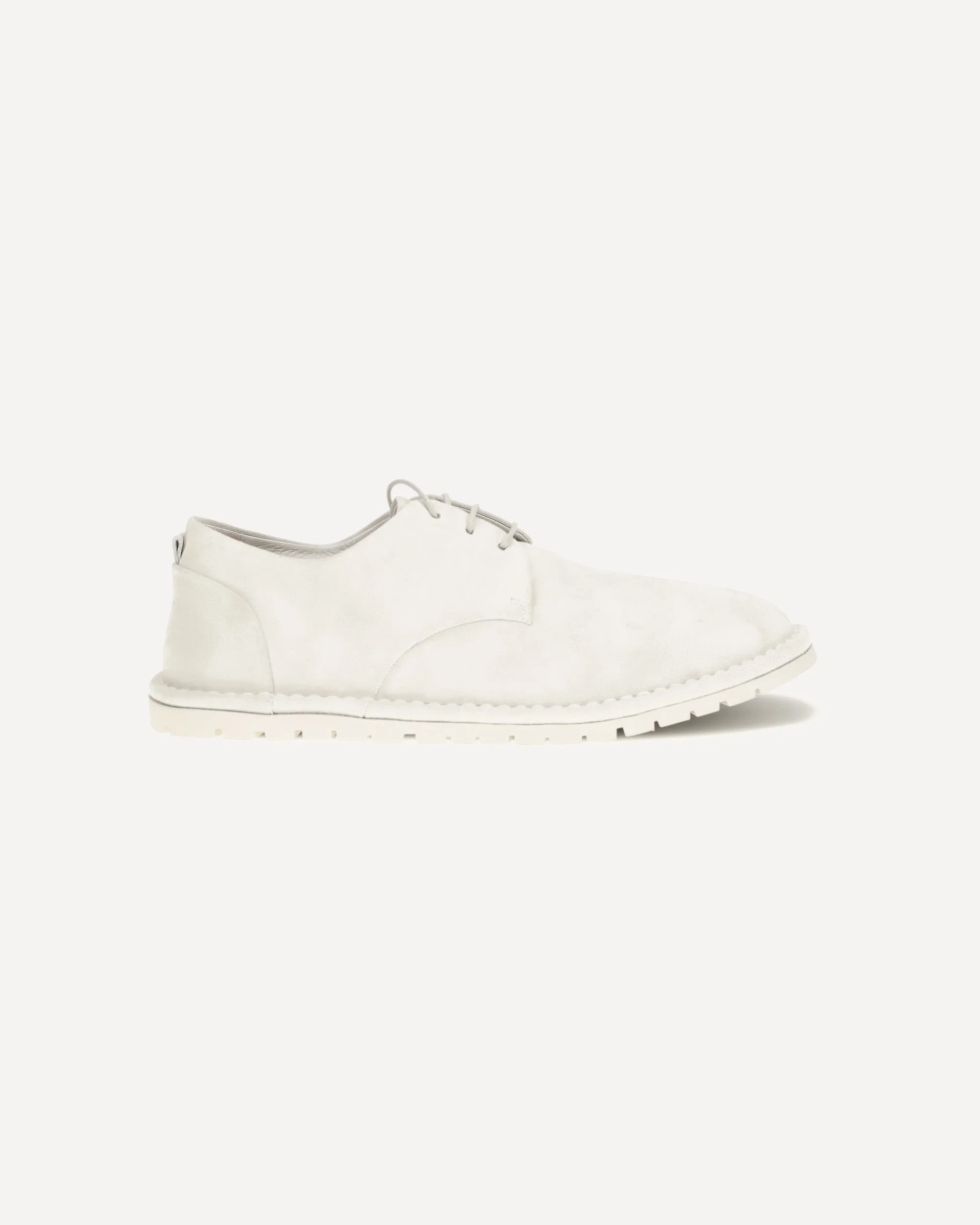 The Sancrispa Lace-Up Shoes by Marsell are made of suede and enhanced by San Crispino's technique, highlighted by the delicate stitching around the edge that underscores the craftsmanship. The minimalist upper design rests on a rubber sole, ensuring comfort and flexibility in every step. DETAILS - Sku: MMG002_121 - Season: SS26 - Composition: UPPER 100% Calf Leather Bos Taurus SOLE 100% Rubber - MADE IN ITALY