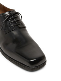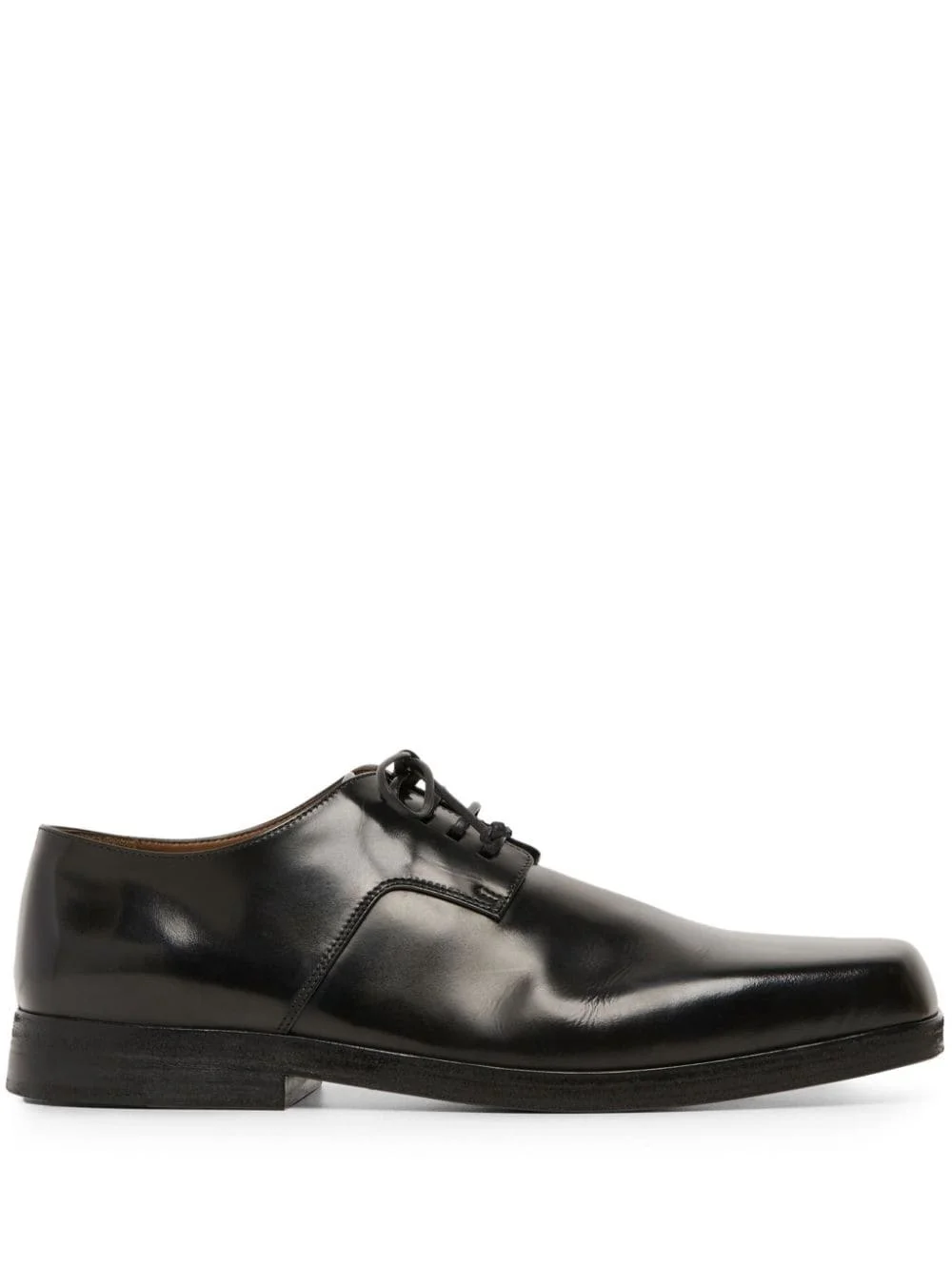 Parapetto square-toe leather Derby shoes black leather glossy finish front lace-up fastening low stacked heel branded insole flat rubber sole Made In Italy Composition Outer: Leather 100% Lining: Leather 100% Sole: Rubber 100%