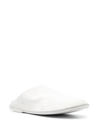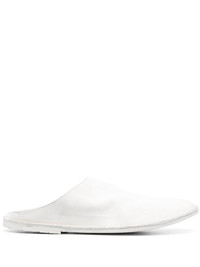 Strasacco suede mules optical white calf suede/calf leather tonal stitching round toe branded insole flat rubber sole slip-on style Made in Italy Composition Outer: Calf Suede 100% Sole: Calf Leather 100%, Rubber 100% Lining: Calf Leather 100% SIZE & FIT Measurement HEEL 0.59 in(1.5 cm)