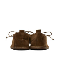 Suede derbys in brown. · Sacchetto construction · Lace-up closure · Pull-tab at heel collar · Nubuck and buffed leather lining · Recycled rubber heel · Hand-painted leather sole Supplier color: Walnut