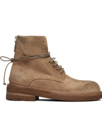 Ankle-high suede boots. · Lace-up closure · Zip closure at heel · Buffed leather lining · Topstitching at welt · Stacked leather and foam rubber midsole · Treaded rubber sole · Heel: H1.75" Supplier color: Hazelnut Upper: leather. Sole: rubber. Made in Italy 252349M255005