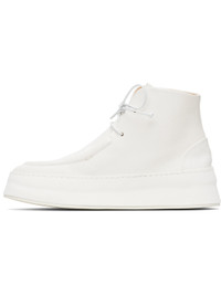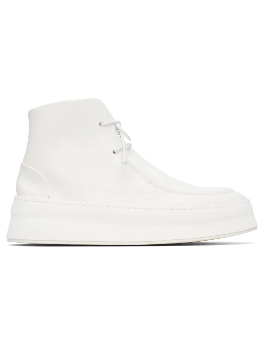 Ankle-high grained leather boots. · Moc toe · Lace-up closure · Buffed leather lining · Foam rubber platform midsole · Treaded rubber sole · Platform: H1.5" Supplier color: Optical white Upper: leather. Sole: rubber. Made in Italy 252349M236008