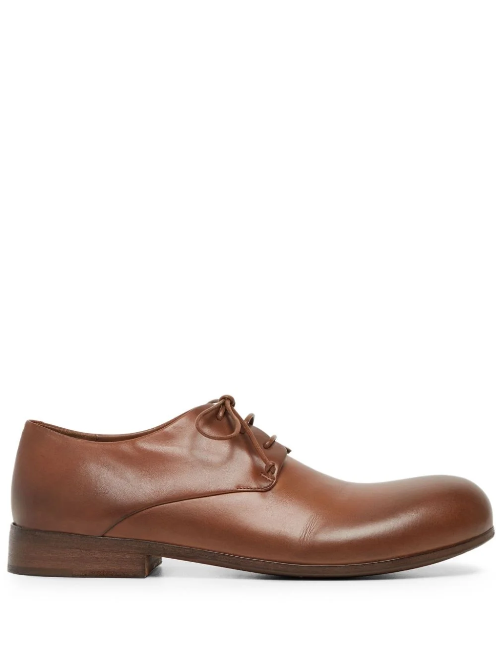 Capozucca leather Derby shoes chocolate brown leather polished finish round toe front lace-up fastening stacked heel leather sole Made in Italy Composition Sole: Leather 100% Outer: Leather 100% Lining: Leather 100% SIZE & FIT Measurement HEEL 0.98 in(2.5 cm) Sole height 0.39 in(1 cm)