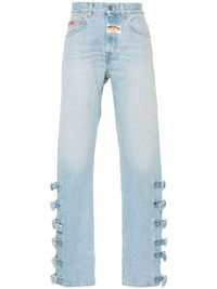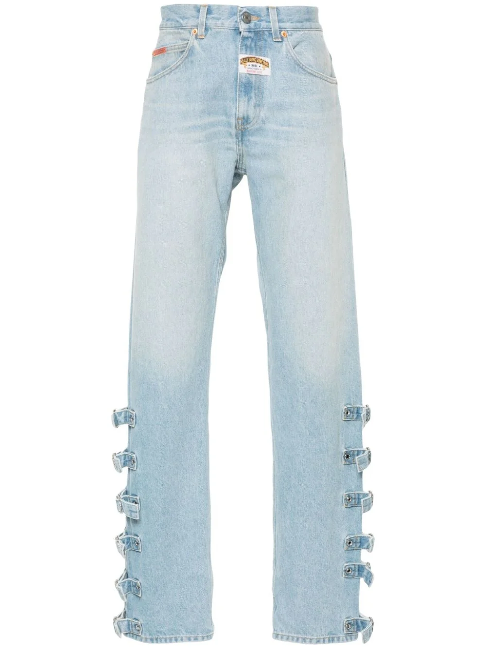 5 Pockets straight-leg jeans Highlights - Light blue - Cotton - Washed denim - Straight leg - Belt loops - Classic five pockets - Logo patch to the front and to the rear - Side buckle fastening - Front button and zip fastening Made in Italy Composition Cotton 100% SIZE & FIT Model measurements Height 6 ft 2 in(1.87 m) Bust/Chest 37 in(94 cm) Hips 33.85 in(86 cm) Waist 27.95 in(71 cm) FittingInformation Designed with a straight leg, these jeans allow for an unrestricted and comfortable fit over the leg Sturdy and hard-wearing, this denim piece offers no stretch This piece fits true to size – take your usual size Washing instructions Machine Wash